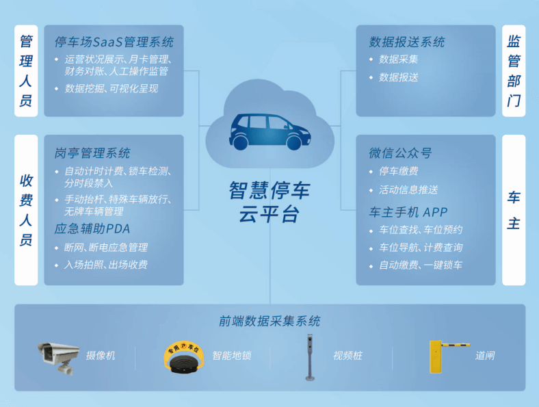 集车位管控、违停抓拍、车位共享、出行停车规划等一系列智慧化功能为一体的平台。